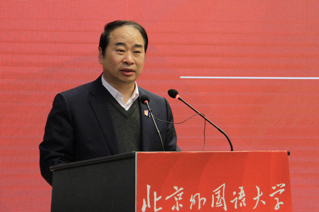 王定华带领大家重温习近平总书记给北外老教授的回信。他表示,习近平总书记的回信表达了热情祝贺,提出了殷切希望,作出了明确指示,充分体现了以习近平同志为核心的党中央对北京外国语大学全体师生员工和校友的无比关心,也彰显了对我国高等教育改革发展的高度重视,为我们开启新征程、承担新使命,指明了前进方向,提供了根本遵循。